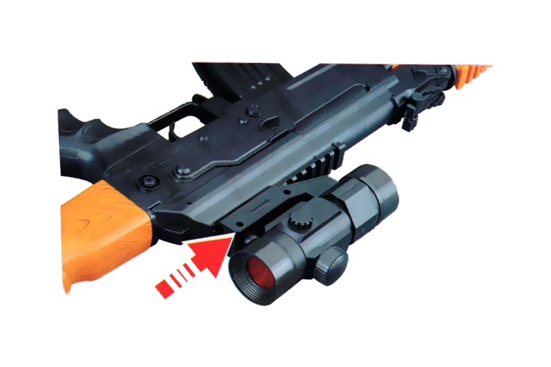 - هنگام فشار دادن ماشه شلیک، علاوه بر صدای تیراندازی ویبره تفنگ نیز فعال میشود و حس یک تیراندازی واقعی را به کودک میدهد.