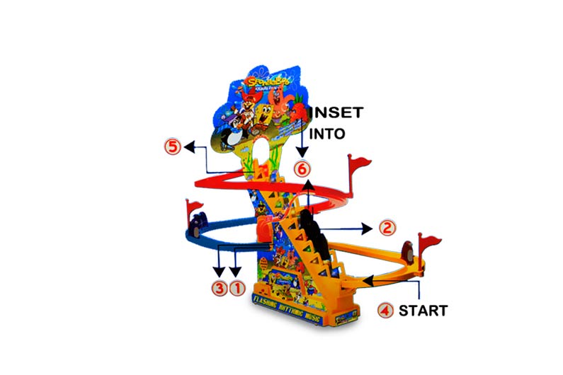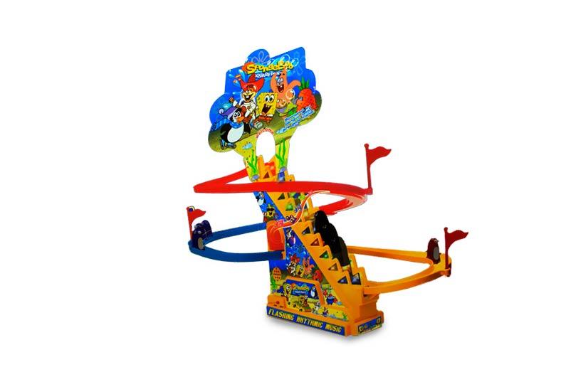 - این اسباب بازی شامل یک پله، سه نوار گردش در اطراف پله ها، 3 عروسک پنگوئن و یک پوستر کوچک از کارتون "باب اسفنجی" می باشد.